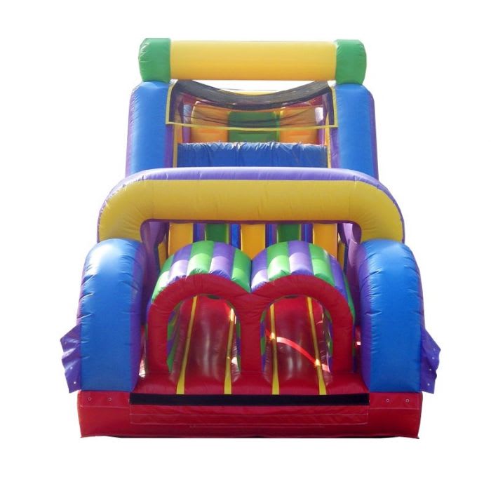Increase the adventure quotient at your child's birthday party with the 40ft Retro Inflatable Obstacle Course. Made with the high-quality, commercial-grade 15oz PVC Vinyl, this inflatable was designed with kids in mind with a little extra dose of fun mixed in. Kids of all ages and their parents too will love this obstacle course so much that you might have a hard time prying them away. The unit was created with the mindset to let participants run, climb, jump, crawl and slide to reach the finish line first. It boasts dual lanes allowing participants to move through the obstacles quickly and providing the opportunity for more participants can enjoy this fun obstacle course with shorter wait times. With its gender-neutral colors, you can be sure that this unit is going to be a hit at any boys or girls event, doubling your earning potential.