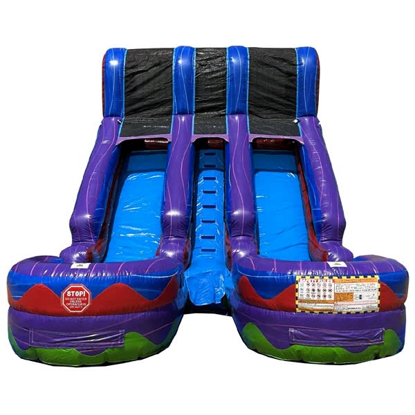 Don't miss out on the opportunity to elevate your next event with our 15'H Dual Lane Purple Slide Wet n Dry. Contact us today to book this crowd-pleasing attraction and make a splash at your upcoming gathering! 🎁