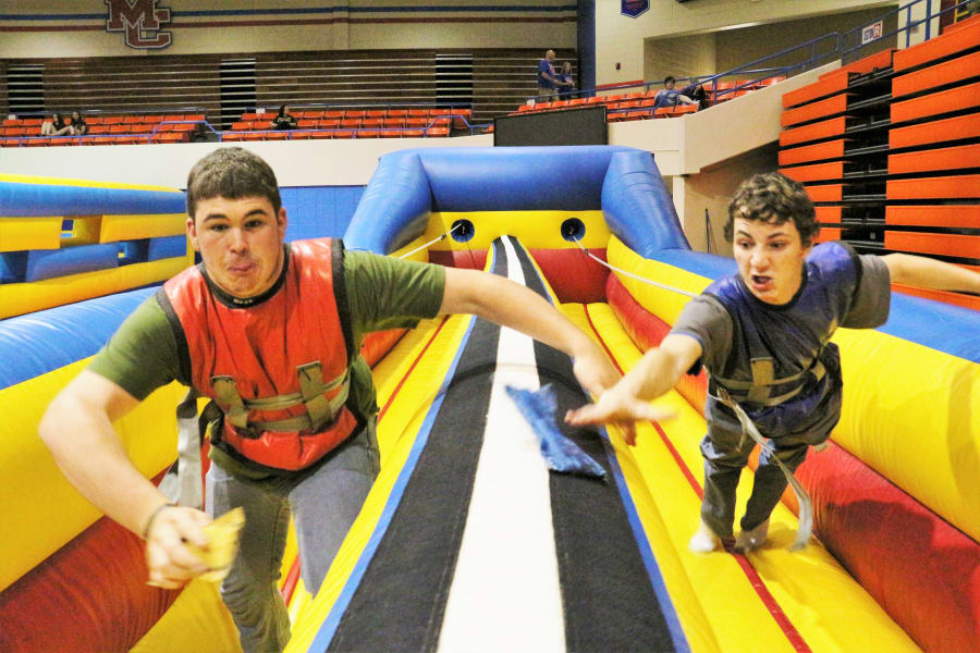 In this engaging inflatable game, two players are strapped into harnesses, each connected to a bungee cord. The goal? Race forward as far as possible before the bungee cord reaches its limit. As you stretch the cord, the tension builds, making the race even more thrilling! When you reach your limit, place a Velcro marker on the center lane to mark your progress. But watch out—the bungee cord will yank you back, providing endless laughs for spectators and participants alike!