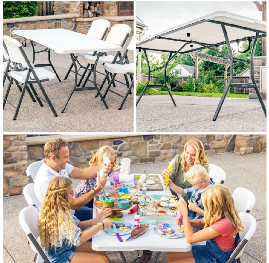 One of the standout features of this table is its easy setup and foldable design. Measuring 72" L x 30" W x 29" H when set up, it offers ample space for dining, work, or display purposes. When not in use, it conveniently folds down to a compact size, making it easy to store and transport. Whether you're setting up for a party, picnic, or professional event, you can have this table ready in seconds. 🚚⬇️